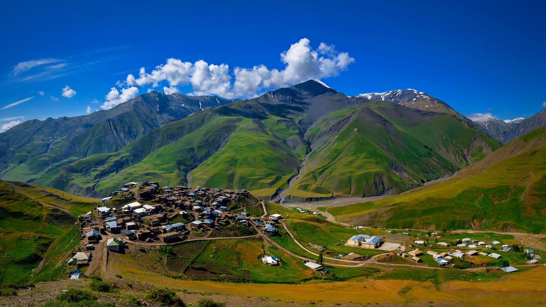 Spring (April-June) and autumn (September-October) see temperatures of 15-25°C in most places. Summer pushes 35°C+ in the lowlands, while cooler temperatures prevail in the mountains. Winter drops to 0-5°C in Baku, colder in the north. Khinalug gets snow when Baku’s warm.